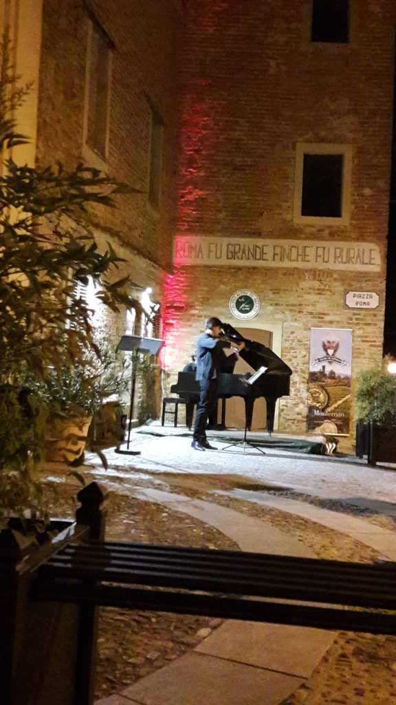 Ieri, martedì 24 agosto 2021, a Bruno (AT), in piazza Roma, nell’ambito dei festeggiamenti patronali in onore di San Bartolomeo, abbiamo assistito all’esecuzione di alcuni brani di musica classica presentati dal violinista Alex Leonte (in arte “Leon”), accompagnato dal pianista Michele Chinellato.