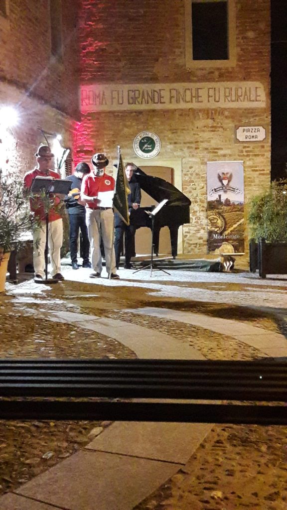 Nel contesto della gradevole serata, presentata da Angelo Soave nella duplice veste di vice presidente dei Marchesi del Monferrato e di Alpino, collaborato dalla vulcanica Anna Ricciardi, si è parlato di Dante Alighieri in occasione dei 700 anni dalla morte, si è celebrato il Milite Ignoto attraverso un competente intervento del Presidente del Gruppo Alpini di Bruno ed infine si sono svolti gli interventi dei Sindaci di Bruno e Fontanile che, unitamente al presidente del Comitato OLTRE di Mombaruzzo, hanno espresso la loro contrarietà verso la costruzione, nella vicina Quaranti, di un centro per l’essiccazione e la termovalorizzazione di fanghi industriali derivati dalle lavorazioni alimentari.