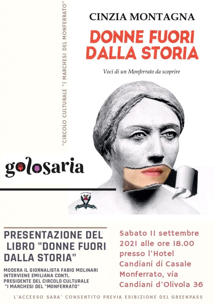 Il nuovo libro di Cinzia Montagna, storica, giornalista e scrittrice di indubbio successo, sarà presentato nell’ambito di Golosaria, sabato 11 settembre 2021, alle ore 18.00, presso l’Hotel Candiani di Casale Monferrato, sede di Barbera&Champagne.