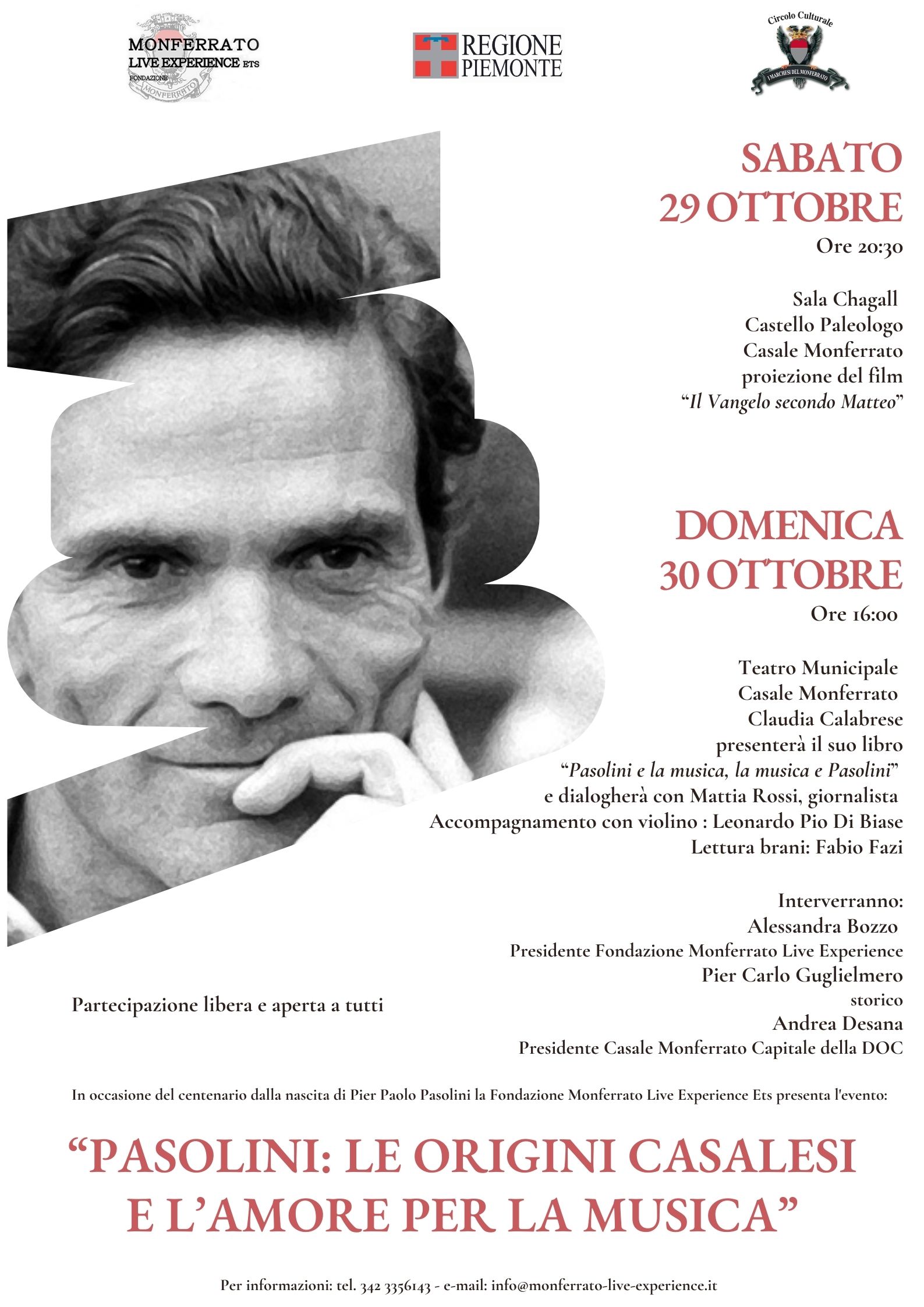 In occasione del centenario dalla nascita di Pier Paolo Pasolini la Fondazione Monferrato Live Experience Ets presenta l’evento “Pasolini: le origini casalesi e l’amore per la musica”.